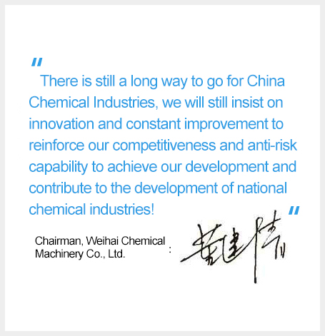 As the largest reaction kettle fabricator in China, we will still insist on the self-restraining and self-improving to become the industry example and pioneer. There is still a long way to go for China Chemical Industries, we will still insist on innovation and constant improvement to reinforce our competitiveness and anti-risk capability to achieve our development and contribute to the development of national chemical industries!